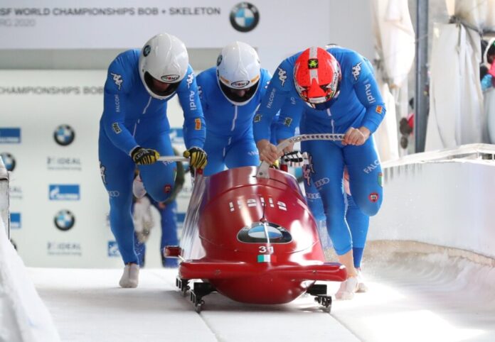Nella foto il bob di Bilotti alle Olimpiadi invernali 2026 di Milano – Cortina