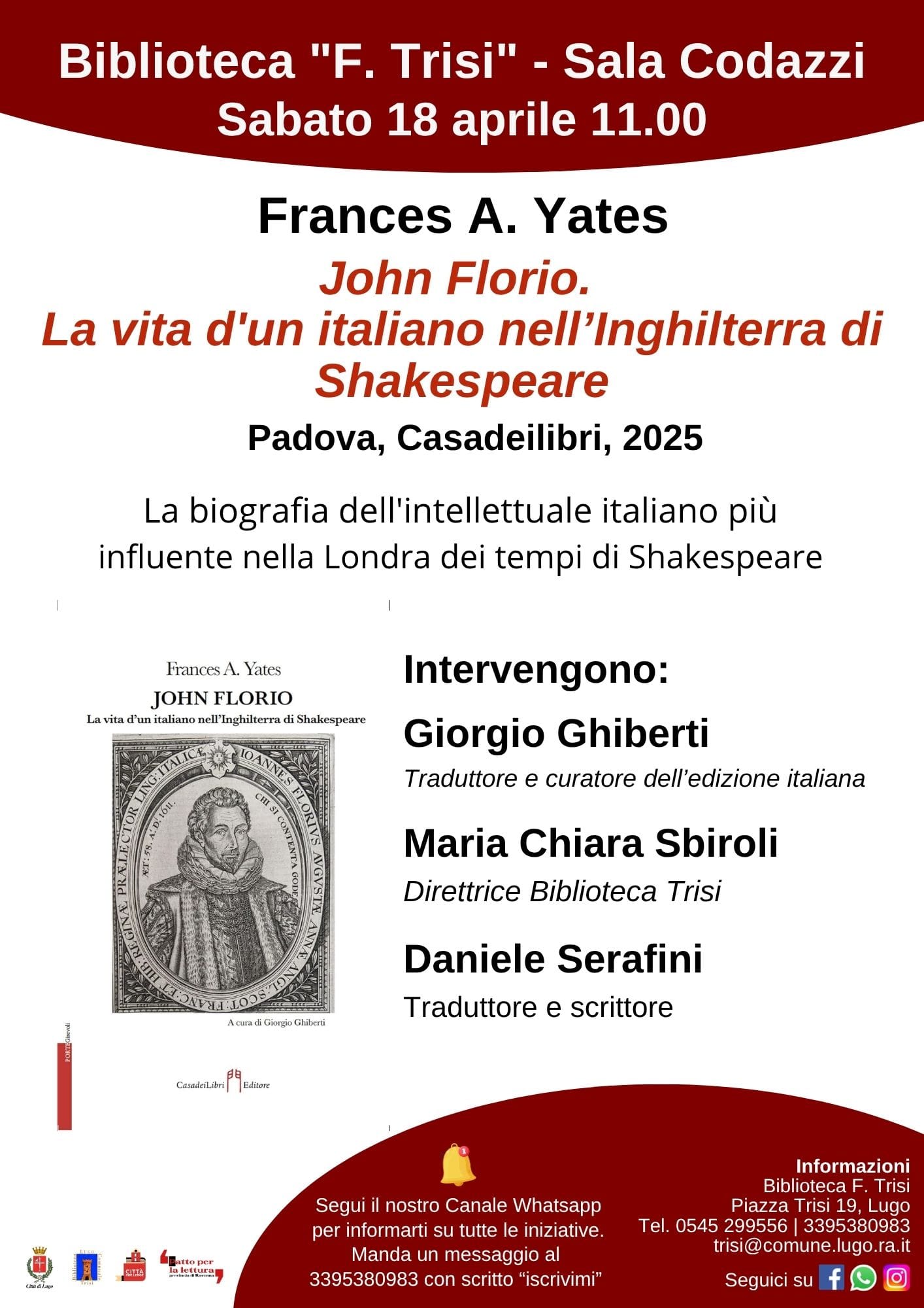 John Florio La vita di un italiano nell’Inghilterra di Shakespeare, di Giorgio Ghiberti, verrà presentato alle 11 di sabato 18 aprile nella sala Codazzi della biblioteca Trisi
